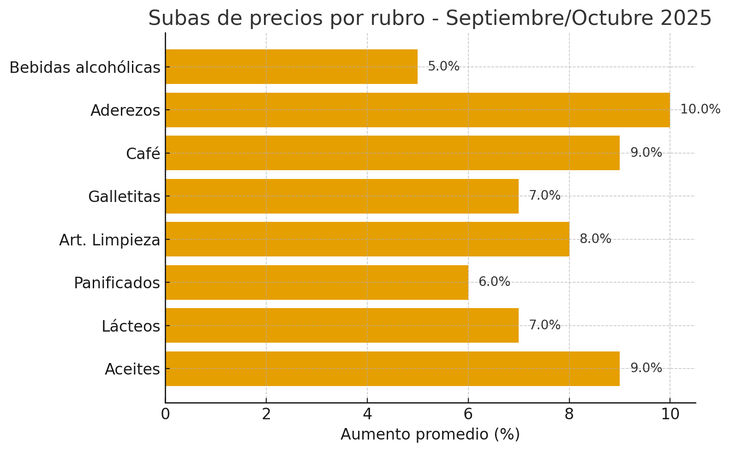 Although October started without major differences, the drag of increases from the last week of September is still felt on shelves and counters. According to different sectoral surveys, local businesses and wholesalers face average increases of between 4% and 11%with greater increases in oils, farinaceous products, dairy products and cleaning products. At the same time, There is increasing difficulty in financing clientsin a context of still weakened consumption.