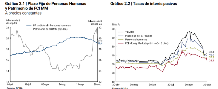 Given the financial volatility and political uncertainty typical of a previous election, In September, a migration of demand deposits towards short-term interest-bearing deposits and a significant dollarization of portfolios was observed.. In the market, the dynamic is expected to be sustained in October.