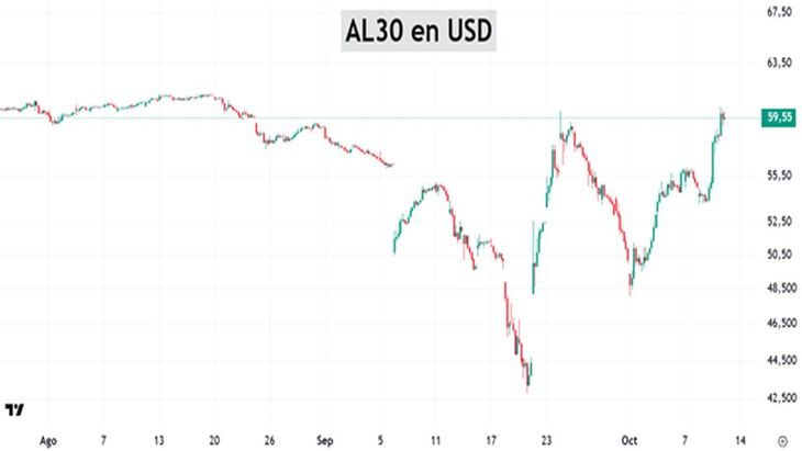 Let’s look at the behavior of AL30, which has already exceeded the levels prior to the Buenos Aires elections, after rising 38% from the lows: