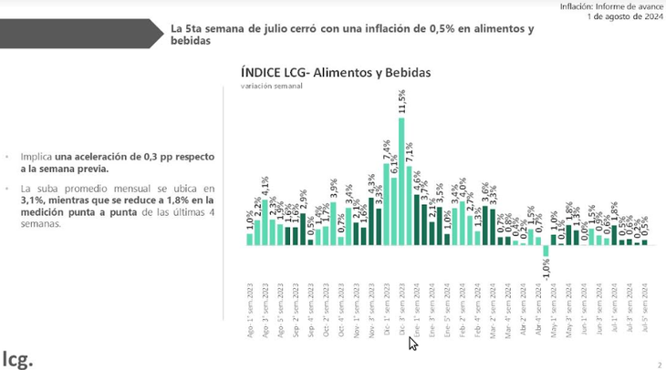The possibilities of counting in the The next few weeks with food inflation below 3% are not remote, if we take into account that the end-to-end measurement of the accumulated figure for the last four weeks fell to 1.8%, with a slowdown of 1.3 percentage points compared to the previous measurement.