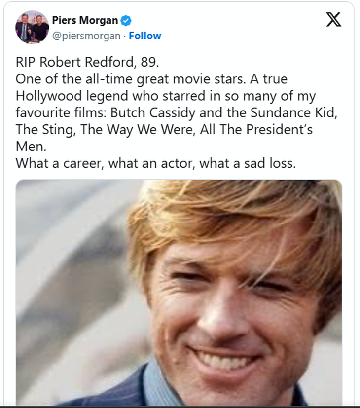 Piers Morganfor his part, he wrote: “One of the great film stars of all time. Films like Butch Cassidy and The Sunday Kid, The Sting or The Way We were are recorded in the memory of millions ”.