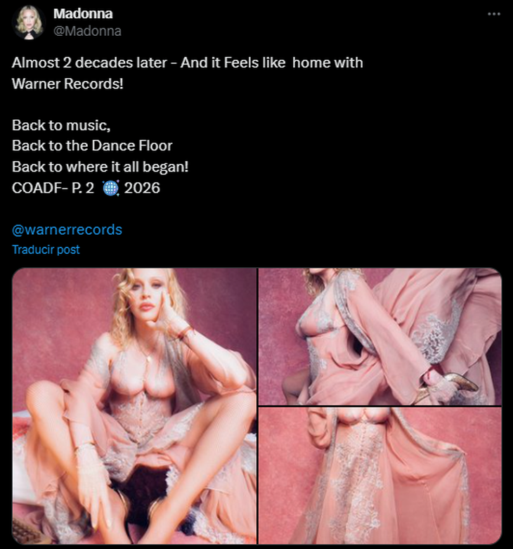 Madonna He revealed today that he will launch a new Dance album in 2026 and has renewed his contract with Warner Records Almost two decades after leaving the seal.