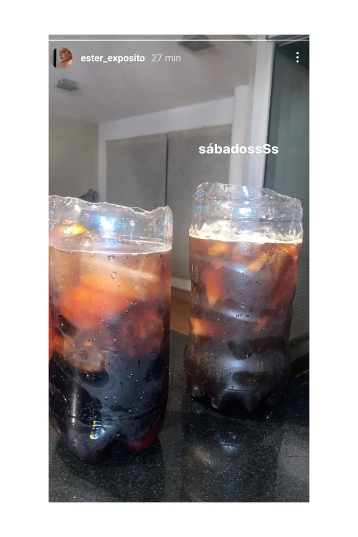 Beyond the images of the couple on the show, another of the most commented stories was one published by the Elite actress on her Instagram account: a fernet with cola served in two improvised glasses with knife-cut plastic bottles.
