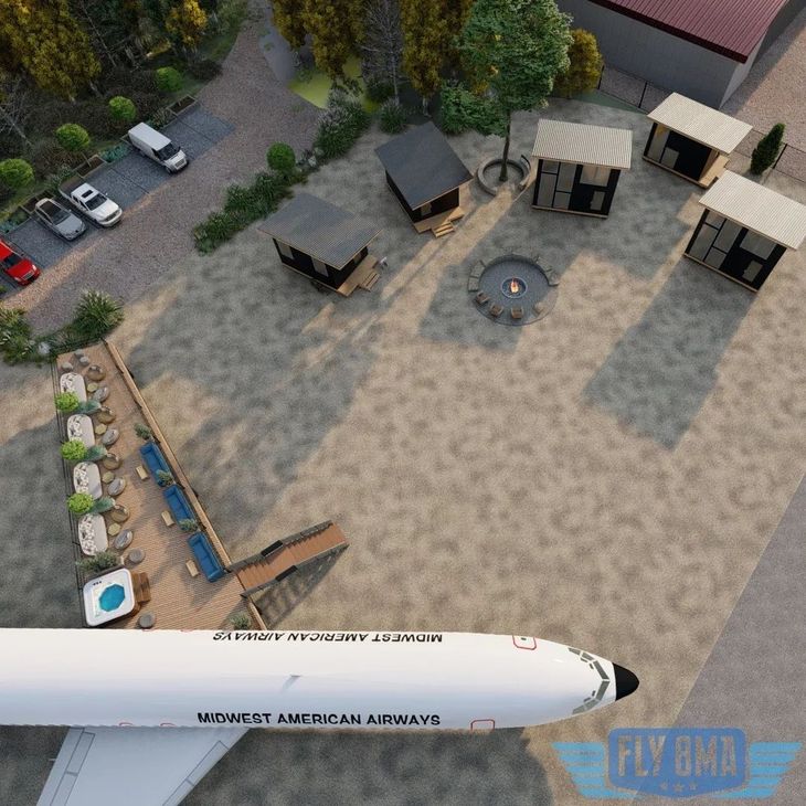 At the moment, DC-6 and Douglas DC-9 are already in use, being private apartmentsa kind of cabins with wheels and wings. Have air conditioning, heating, kitchen, bathrooms and laundry.