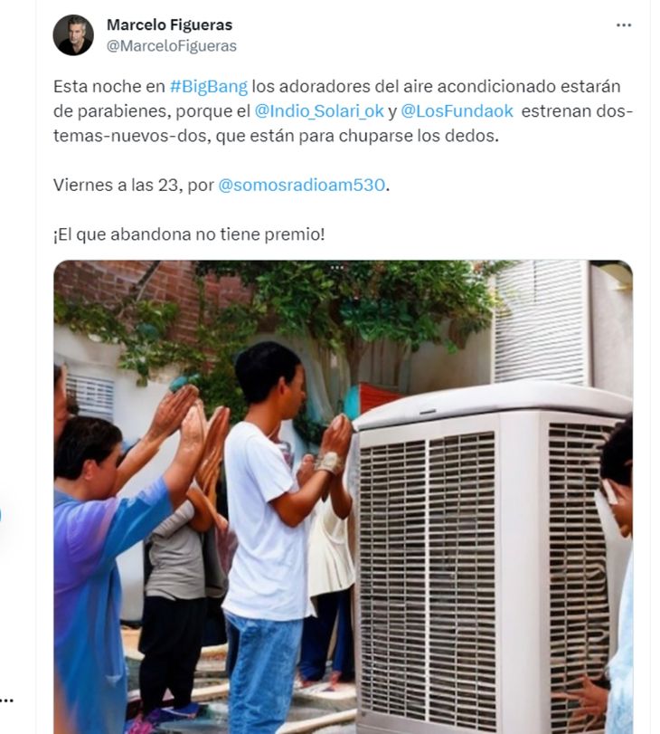 The same journalist added today that the surprise, as many of his fans suspected, was neither more nor less than the premiere of two new songs by Indio Solari and Los Fundamentalistas del Aires Acondicionado. Figueras added in his tweet that the themes “are to lick your fingers”.