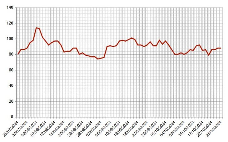 In fact, the Uruguay Bond Index (UBI) of AFAP Republic It is located at a similar level, with 85 basis points, compared to the 92 it marked in September and the 102 at the beginning of August.