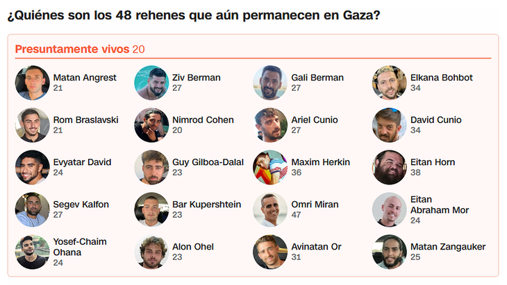 Of the 48 total people kidnapped, it is presumed that 20 remain alive, according to sources Forum of Families of Hostages and Missing Persons, AP, Reuters, Regional Council of the Unknown Villages of the Negev and reports from CNN.