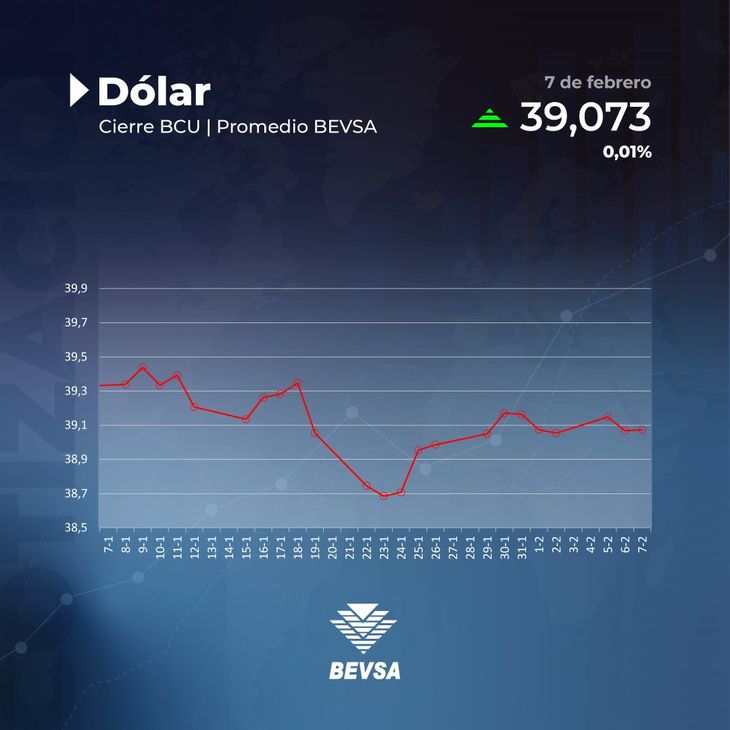 He dollar rose just 0.01% compared to last Tuesday, closing at 39,073 pesos, according to the official price of the Central Bank of Uruguay (BCU)and operated stable today, climbing just 0.005 pesos within the range of 39 pesos.