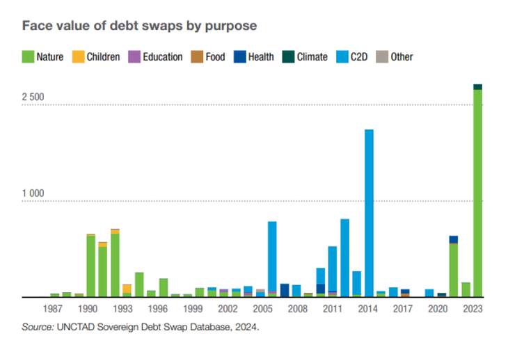 “These exchanges involved debt for an aggregate total of just over US$11.5 billion, most of which were of the ‘Debt for Nature’ type. One of the most useful operations of this type to think about the case of Argentina is the one Ecuador made in 2023, which at the time was the largest exchange in history (later surpassed by one made by El Salvador last year),” the report says.