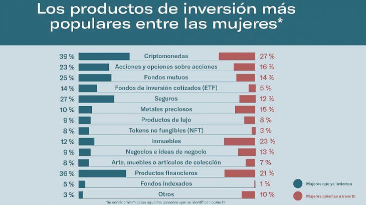 In Spain, almost two out of five (39%) female investors consider cryptocurrencies as their favorite investment product. Among those who have not yet invested, more than a quarter say they will start with the crypto assetsfollowed by real estate and banking products.