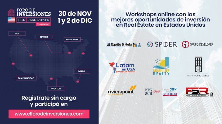 The days November 30, December 1 and 2 begins the sixth edition of the Investment Forum USA. You will be able to know all the opportunities to invest in the country with the largest economy in the world by registering for free at www.elforodeinversiones.com/usa