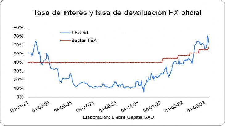 After the fifth rise in rates in the year, we continue to point out that the Central Bank falls short in magnitude, in short, we maintain negative real rates and the disincentive to demand money remains with a Badlar with a TEA of 57%. They not only run below inflation, but also slower than the crawling peg, making it impossible to accumulate reserves. The flip side (opportunity) is reflected in cheap financing at rates well below expected inflation/devaluation.