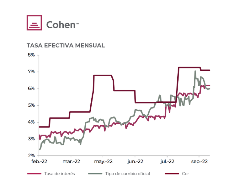 With this, in the first nine months of the year, agriculture has already liquidated the same as all of 2021, a year that had been a record. The challenge will come from October given that, with all the soy liquidated, the foreign exchange market is left without the main engine of supply; We estimate that the liquidation of the sector would be around USD 1,500 M per month (for the remainder of corn and wheat).