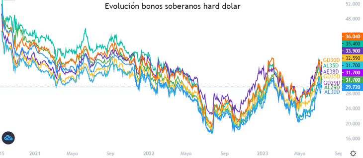 In the last month and a half, bonds have risen between 35 and 50% in dollars due to the expectation of a change of government, accompanying the rise in emerging market bonds. I mean, it wasn’t just the internal humor. Currently, they are trading at parities of 30% – 36%, moving away from the 20% floors reached in July 2022, post-crisis, Guzman’s departure. Obviously, the recovery was not quick or consistent, as we had several swings in between.