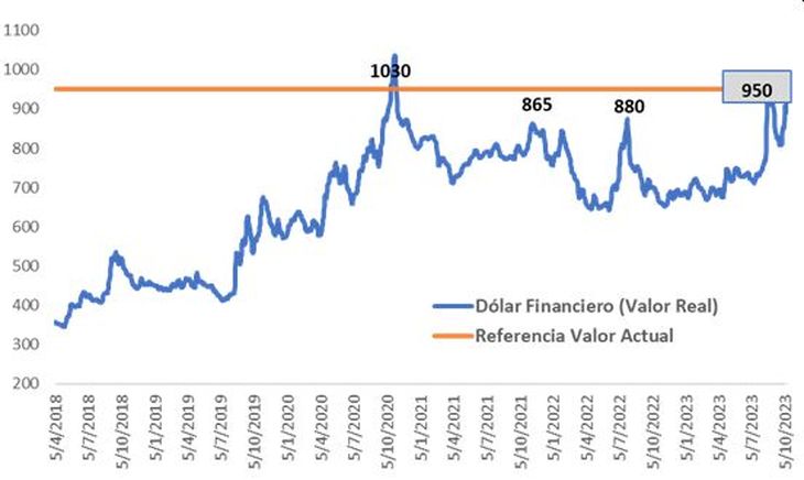 Investors who dollarize positions in these values do not operate looking at the real long-term equilibrium, but instead focus on the possible nominal levels that the financial dollar may reach in the coming weeks. That is, they apply a nominal approach.
