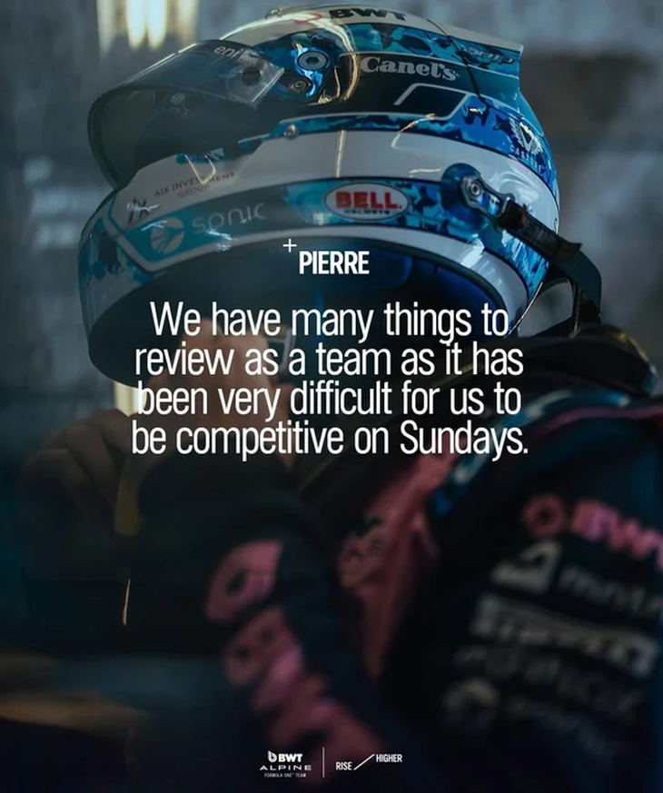 In the last image of the post, Alpine highlighted a phrase from Pierre Gasly: “We have many things to review as a team, since it has been difficult for us to be competitive on Sundays.”