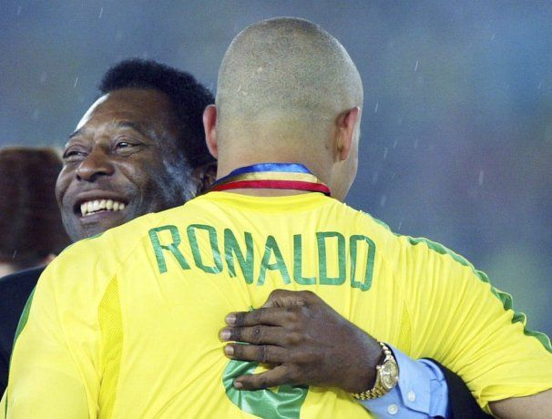 “From generation to generation, Pelé hugs Ronaldo at the presentation of the 2002 World Cup winners in Japan. This was Brazil’s fifth victory overall and Pelé looks as happy as if he won it himself, which of course! Of course, he did it three times!”