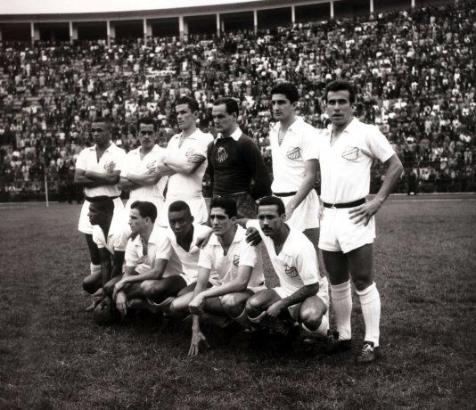 “During a trial for Santos in 1956, former Brazilian star Waldemar de Brito assured the club that Pelé, then 15, would become ‘the best footballer in the world.’ They signed him and the rest is history. He made his debut in the ’56-’57 season and at the beginning of the following season, when this image was taken, he was already a regular starter”.